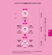 先の「図本」がヘルスケアビジネスを“ 始める人” 向きであるのに対し、「図本Ⅱ」はヘルスケアビジネスを“ 始めている人” 向きとなります。ヘルスケアビジネスに係るすべての提案書、計画書、申請書の書類作成に、そして実行中のプロジェクトの中間評価にも、抜け・漏れ・欠けがないかをぜひCheckしてみてください。